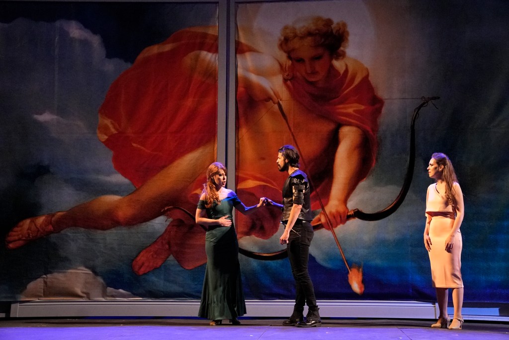 Perhaps Maugeri’s strongest suit is in differentiating the five characters. Francheska Loy is Hannah, the young victim. Despite her success as a young adult, she lacks confidence in her abilities and her decision making. Not true of her tiger birth mother Kristy, played by Kim Seipel. Highly self-indulgent, she is also a realist who knows that her own failures and serial marriages haven’t exactly set a comforting example for Hannah. Meanwhile, stepmom Beth, who is portrayed by Sandy Sodos, exudes optimism informed by her devout Christianity. Kristy and Beth are oil and water, and there is nothing too insubstantial for them to disagree on. Though in fairness, the friction comes mostly from one side, as it is usually the implacable Kristy who tries to douse the effusive Beth.