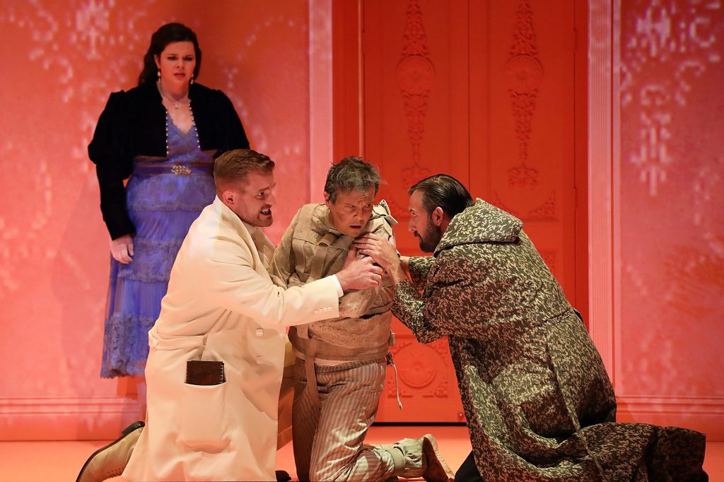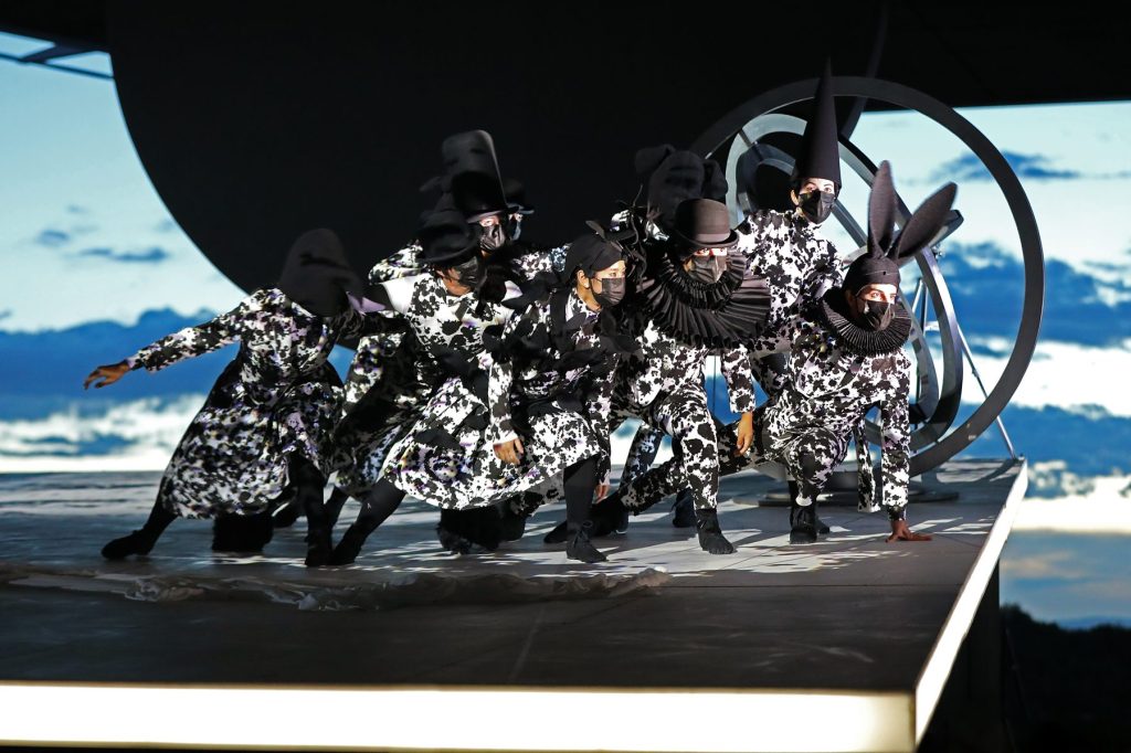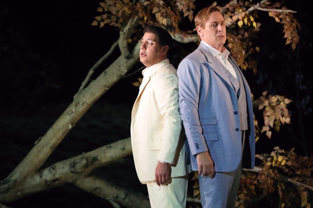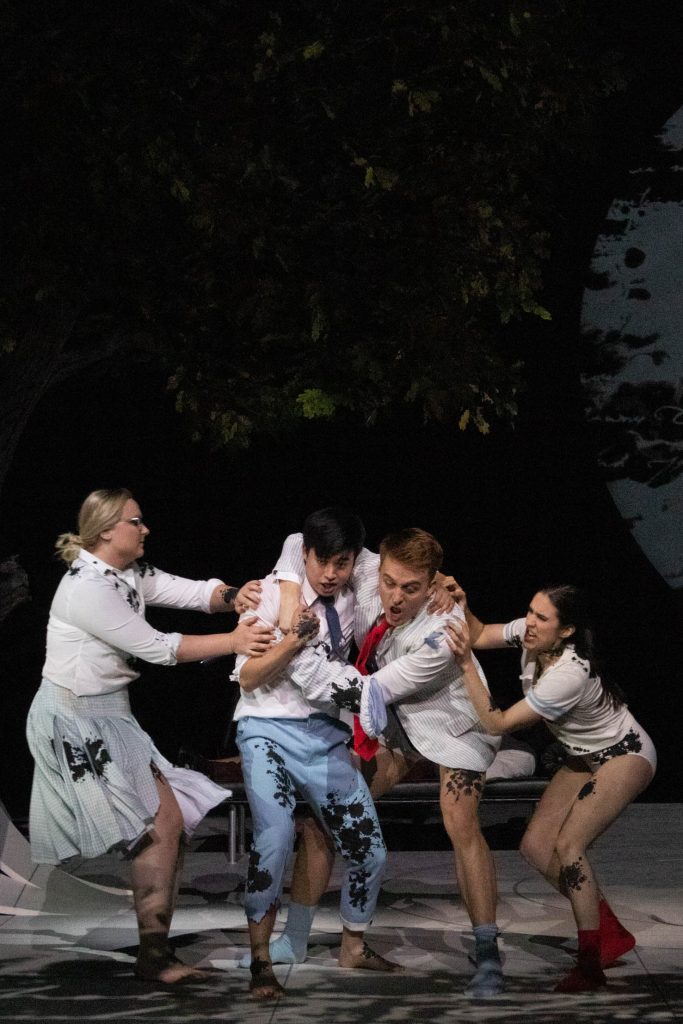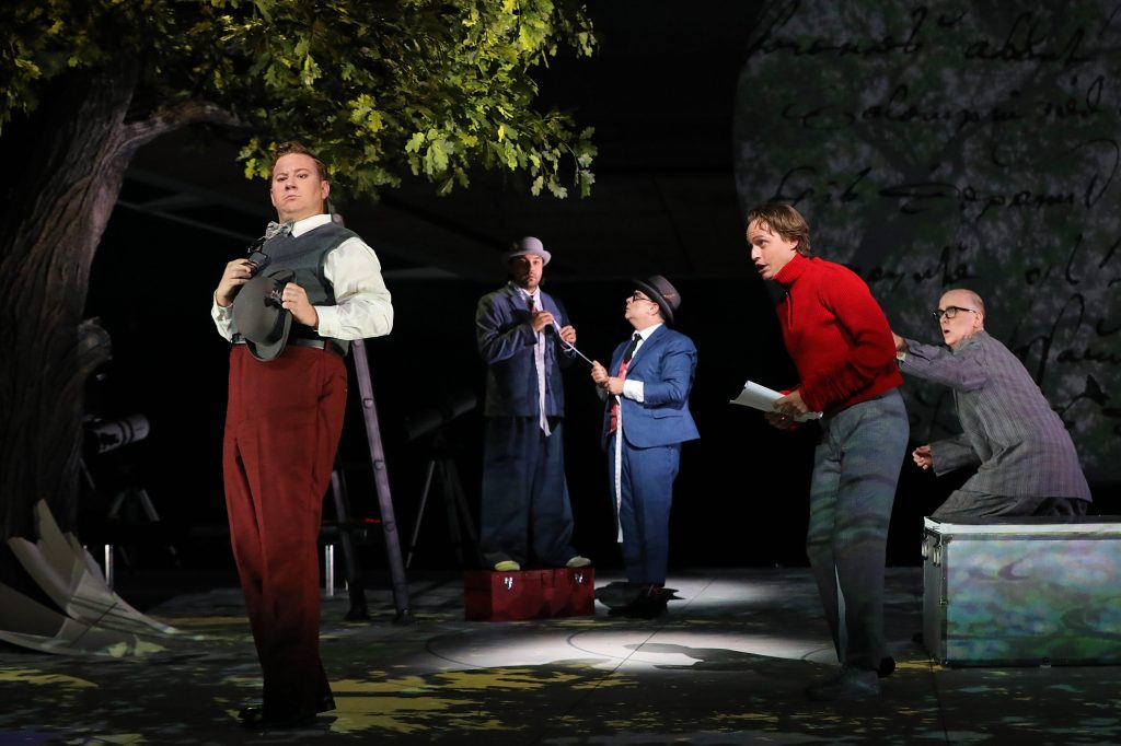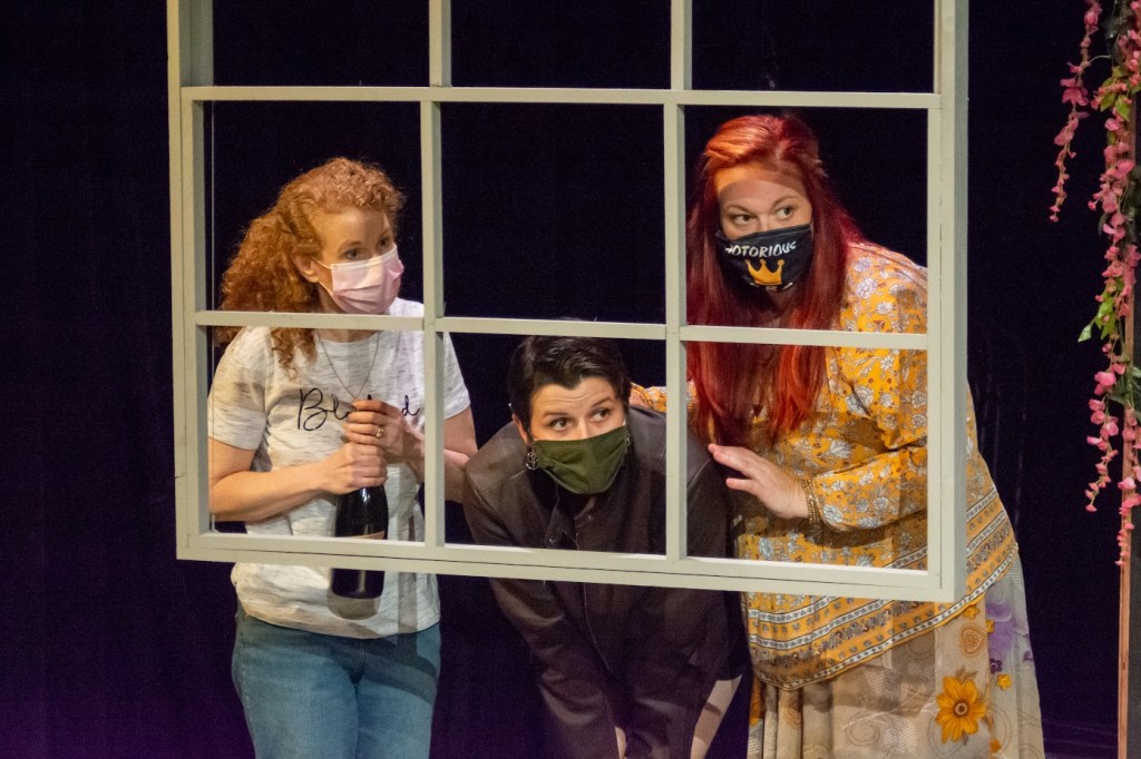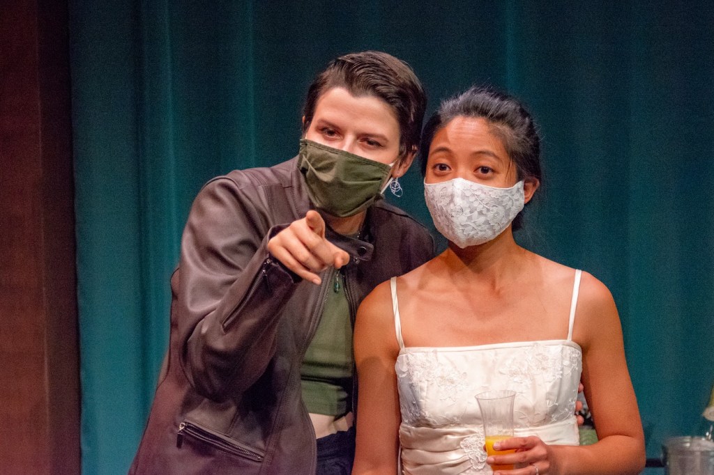 But are there ever mitigating circumstances! Because cast members have unvaccinated children, extra precautions applied. This is the first play that I have seen since the re-emergence of live theater a couple of months ago in which the cast is fully masked. We all know that much of our facial expression is hidden when wearing masks and that our voices are more muffled, so the desire to compensate is understandable.