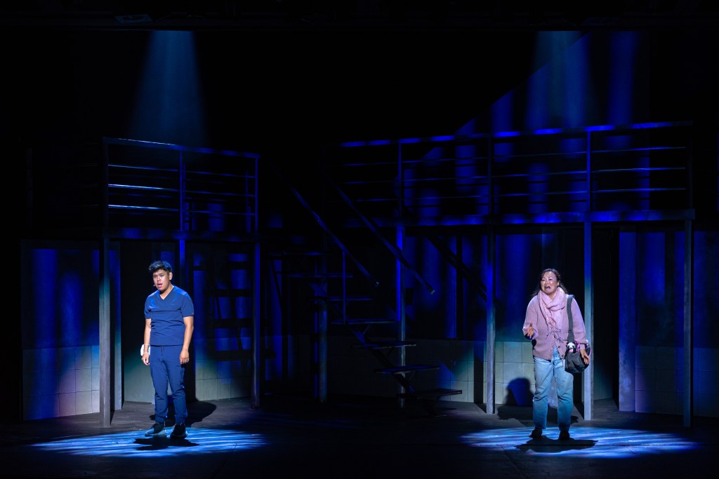 Essentially, the show is an amalgam of skits full of the expected tropes, with music that often ties to each mini-drama. Not all work, but most produce the desired laughter. In one, a Paul McCartney groupie, Gussman, repeatedly stalks her prey, and even combs his trash, coming away with – you guessed it – his broken comb. In another favorite, characters are silhouetted against a back screen with Le Nguyen appearing as James Bond in “Coldfinger,” a takeoff on – well, you get it. One recurring pastiche is several scenes that borrow directly from “Rowan & Martin’s Laugh In,” with music, action, and lights coming to a stop except for one spotlighted character who delivers a funny bit.