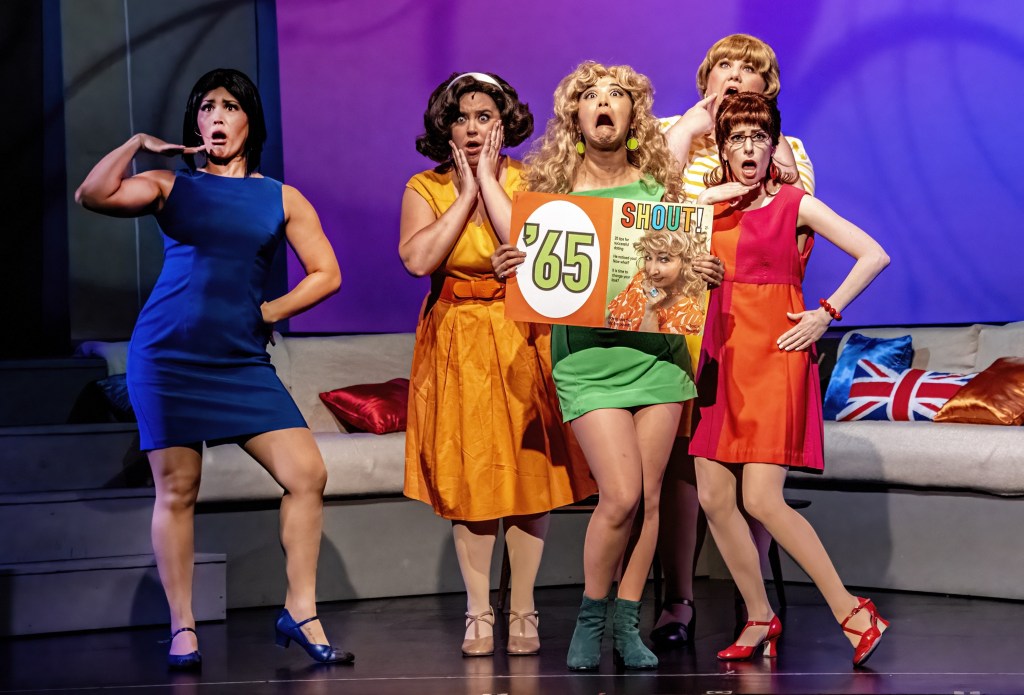 “Shout! The Mod Musical” is a musical revue of the ‘60s shown through the experiences of five young adult women living in London, as conceived and curated by three American men (of course)! The songbook draws from tunes of the era, predominantly those popularized by English songbirds, especially Dusty Springfield and Petula Clark (“Wishin’ and Hopin’” and “Downtown” for starters.) The South Bay Musical Theatre cast brings strong voices, deft comedic skills, and great enthusiasm, resulting in a fine entertaining evening. Don’t expect the significance or sophistication of Sondheim or Hammerstein, but for those old enough to remember, it’s a frothy retreat into nostalgia. Younger people will get a slice of life snapshot of what it was like back in the day.