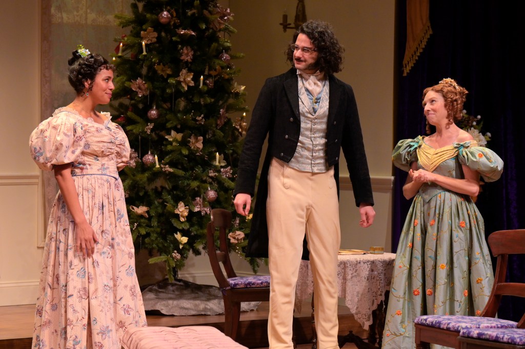 One modicum of physical change noted in the play is this new idea of bringing the outdoors to the indoors being practiced in Germany – a nicely trimmed Christmas tree. But more importantly, an internal change will occur as Darcy will realize his standards and rules don’t necessarily make for a better world. He will learn that the selfishness of demanding his ward live the life that he wishes her to live will not bring her happiness – nor him, if he fails to persuade her.