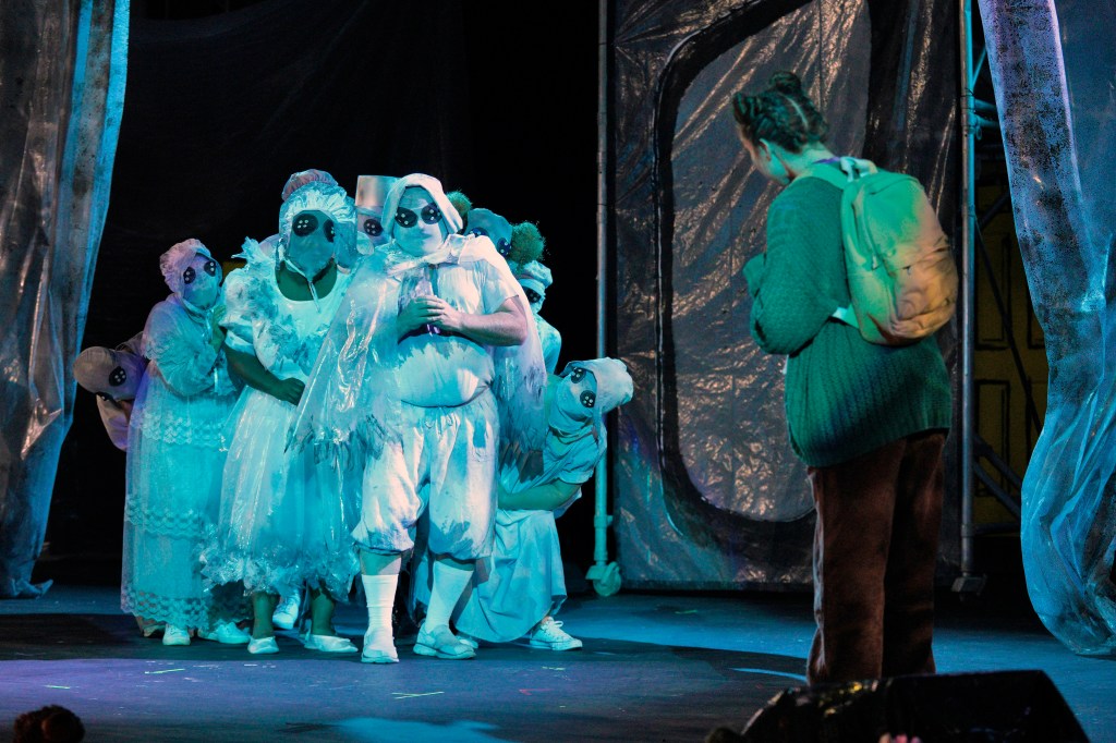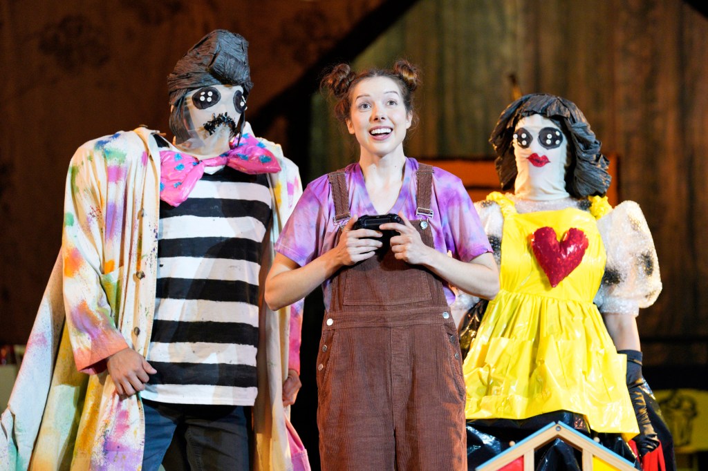 In Coraline’s real world, Stephanie Sanchez as Mother is involved with her but strict. Efrain Solis as Father is charming but absorbed with his work as an inventor. Both artists are gifted as singers and actors. When Coraline moves into the alternate world, the same performers take on the roles of Other Mother and Other Father, but their faces appear like ragdolls with buttons for eyes. Other Mother tells Coraline that she can always have anything she wants, and the only exchange is that she must allow her eyes to be replaced by buttons.