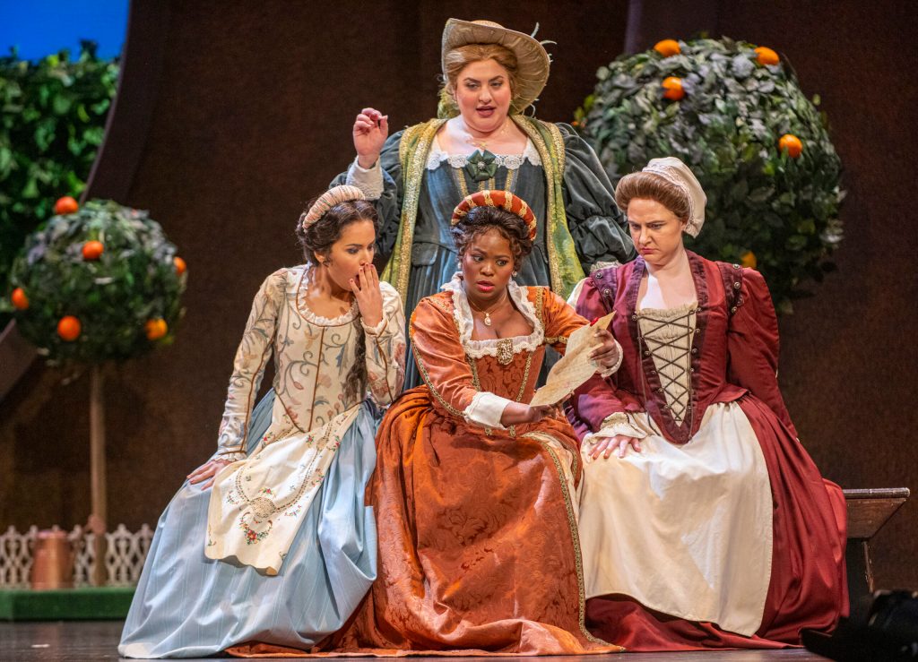 Frothy delights like “Falstaff” present particular challenges. Comic timing, enthusiastic affect, and vocal versatility must be heightened. Opera San José’s production excels in every dimension. Performers sing with joy and act with charm. All of the artistic elements strike the right note, resulting in a production that glitters.