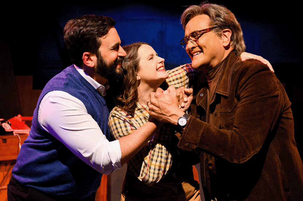 First, the easy part in discussing this stage oddity. “Merrily We Roll Along” tells the evolving relationship of friends from 1957 to 1976. The central figure is Frank, who begins as a poor, idealistic composer of musicals who cracks Broadway and then becomes successful composer for movies. He is also a serial lover with a succession of girlfriends and wives. Charley, Frank’s childhood best friend and lyricist during the Broadway days, becomes a family man and staunchly retains his artistic ideals, unwilling to bend to the demands of Hollywood. The two men part ways.