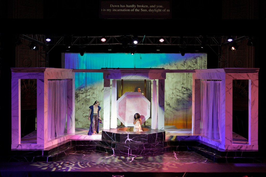 Instead of a traditional opera orchestra in a pit, the Mariachi Azteca band of guitars, violins, and trumpets plays from the periphery of the stage. The melodic music in the mariachi style always engages. Some songs are quite touching with messages particular to the immigrant experience – thoughts like “we never leave the south,” “we always want to return,” and the plea of Laurentino’s first wife Renata “I’m not marrying to receive money through the mail.”