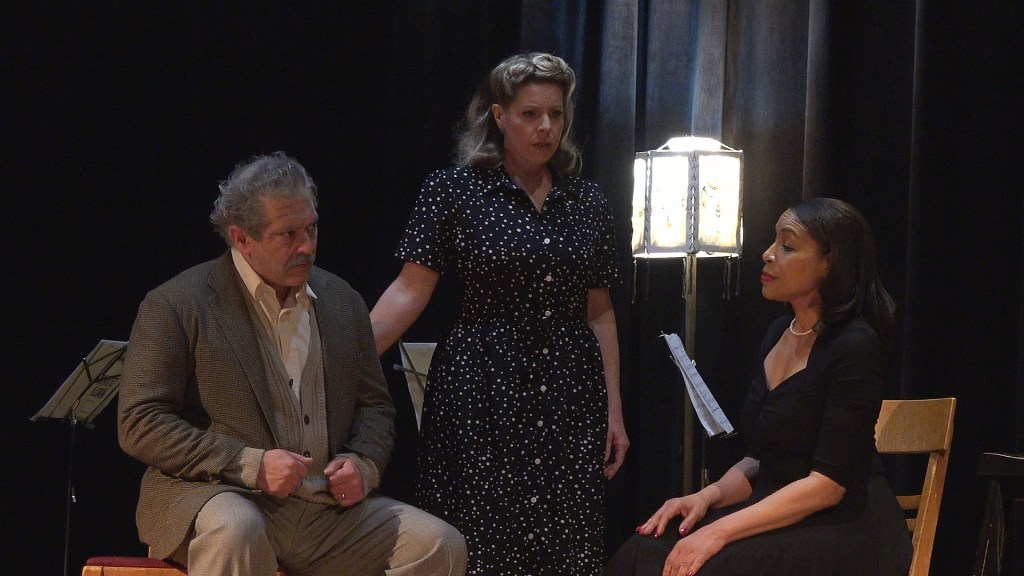 The title character is performed admirably by warm-voiced baritone Nikolas Nackley who captures a part of Einstein’s character, his concerns, and his groundedness. The opera opens in 1941, with Einstein, his secretary Helene, and his stepdaughter Margot – the women beautifully sung and played by sopranos Angela Cadelago and Julie Hathaway respectively. Each one Jewish, the three characters have just become U.S. citizens and relish the freedom from oppression and fear for life under the Nazi Holocaust. But perhaps in a nod to the current threat to democracy posed by the possibility of a second Trump administration, a cautionary alert is also raised along with their appreciation for new lives.