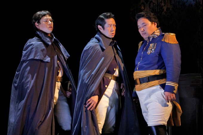 In this winsome production, considerable humor draws from pantomime rather than words, and two non-verbal emphases draw from the relocation to Latin America. A recurring theme is the tango, which was born in Buenos Aires, and the music and dance do add considerable flair. The other is the use of pretend bullfighting by one couple when they are bored by the other pair.
