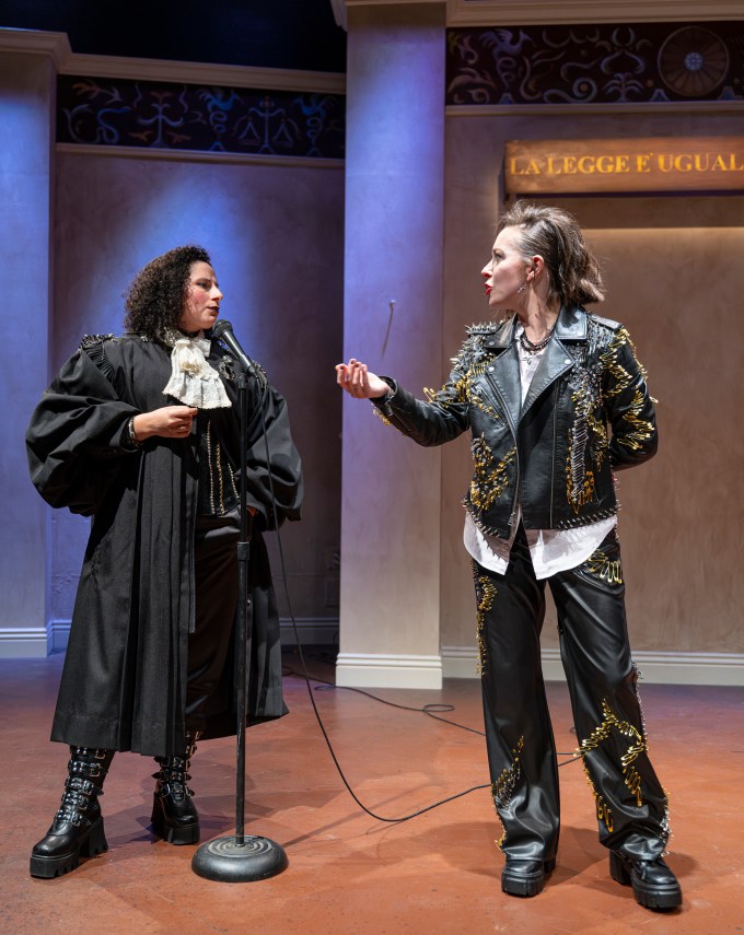 There are other presences and absences that one may wish were a little different. If you think the words “it’s true” in the title are repeated more than necessary, wait until you hear Artemisia repeat the words tens of times with varying emphasis. What’s missing is projections of Artemisia’s paintings, which would add credibility to her claimed reputation as an artist. Finally, some playwrights expect the audience to pick up on character names and shifts in how characters are identified the first time they are mentioned. Some audience members were left in the lurch because multiple, long Italian names were introduced too quickly.