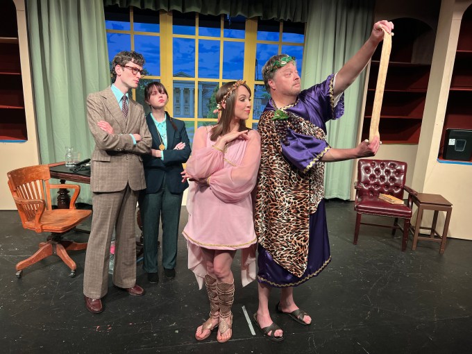 Such is the set up to The Gods of Comedy, from the unquestioned master of modern American farce, Ken Ludwig, who created Lend Me a Tenor, Moon Over Buffalo, and Crazy for You, among many others. While not as lauded as his most distinguished work, this one is full of idiosyncratic characters in quirky situations. And it happily romps through tropes of academe, romance, and Greek theater.