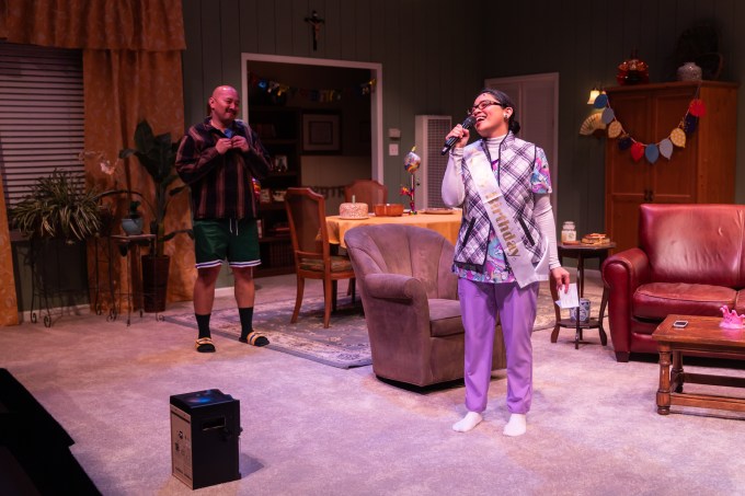 In a broader sense, however, the play goes beyond the plot and dives deeply into the world of autism. Brendan Looney’s powerfully illuminating Christopher is more than a simple role portrayal, since he brings authenticity as a real-life autistic, logical but regimented and repetitive. His depiction is deep and memorable. He elicits sympathy with his inability to grasp social conventions, like the natural aversion others would have to his pet rat, and his difficulty interpreting others’ intentions and facial expressions. But beyond its anchor in autism, the play is really about all outsiders who are treated with indifference or scorn by established society.